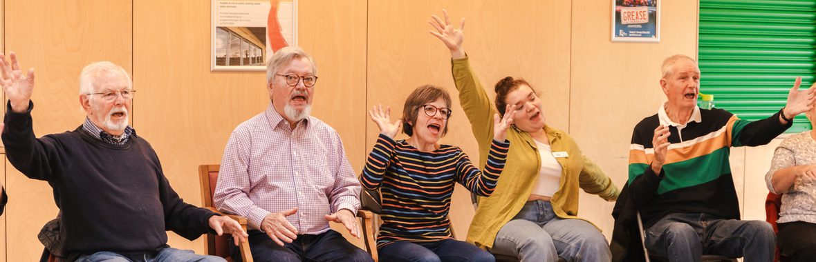 Skylarks is a fun and friendly singing group for people living with Parkinson’s and their companions.