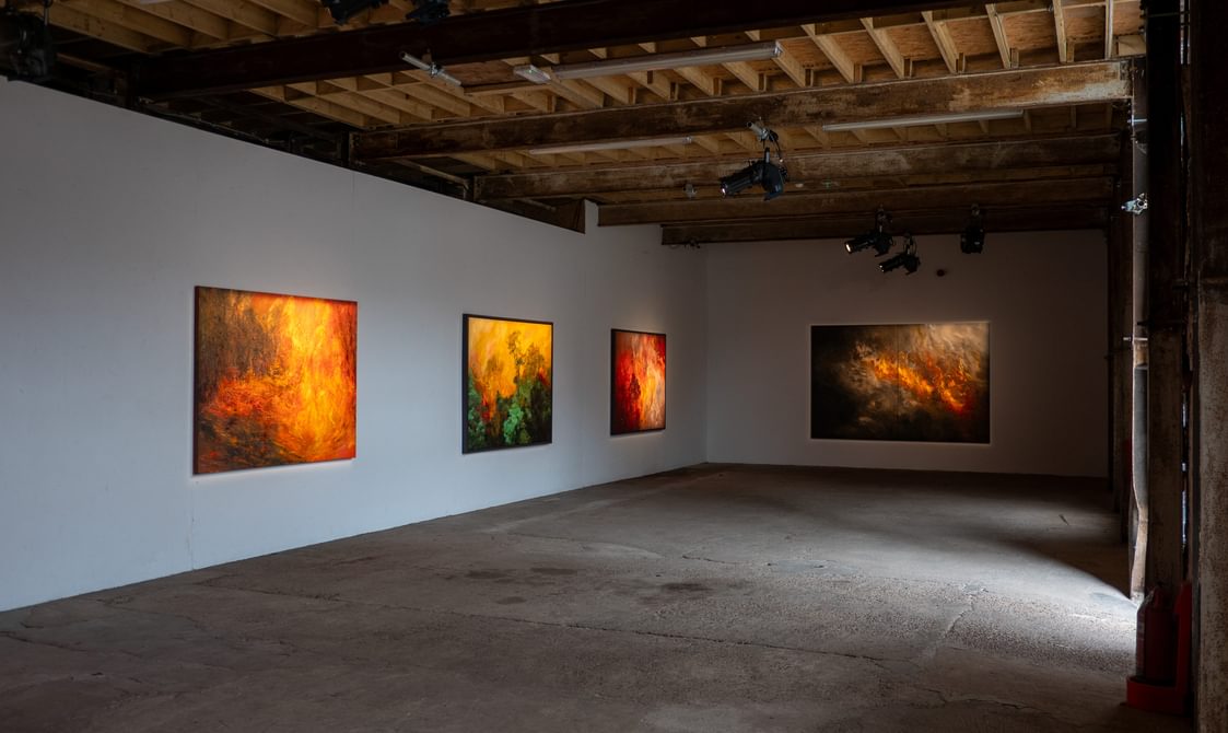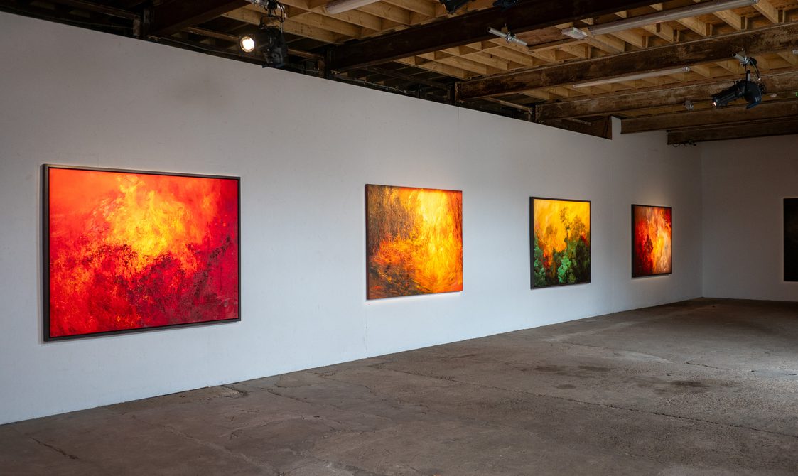 An exhibition of painting and sound documenting “...the fierce forces that are unleashed when the planet’s forests are pushed over the edge”.