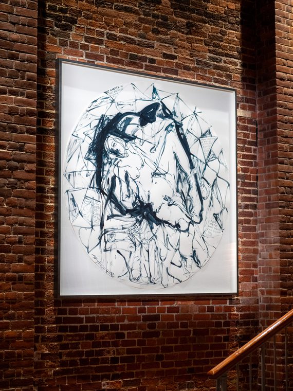How Can You Know What I Feel For You, 2025, is a monochromatic circular piece on paper. This large scale work can be found in the inner foyer of the world famous Snape Maltings Concert Hall.