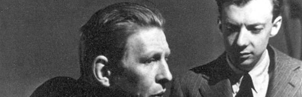 HEADER IMAGE: FORMAL STUDIO PORTRAIT OF BOTH, WITH AUDEN IN PROFILE SMOKING. THE PHOTOGRAPH WAS TAKEN AT THE TIME OF THE REHEARSALS FOR PAUL BUNYAN IN NEW YORK. PHOTOGRAPHER: UNIDENTIFIED
