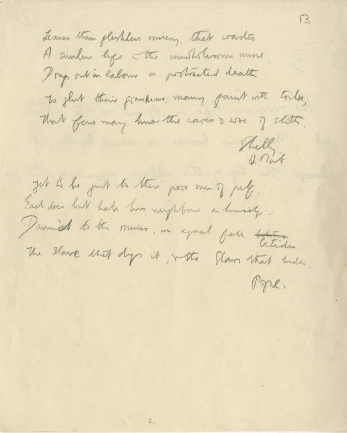 Poetry selections by Percy Bysshe Shelley and Alexander Pope that were possibilities for the work. Written in Britten’s own hand. Courtesy of the Britten-Pears Foundation