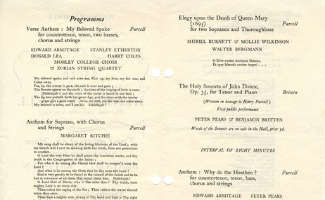 The texts, by Pushkin, came from a Penguin edition of the Russian writer’s poems Britten had picked up from Heathrow on the journey out. During the Armenian visit, Britten asked his hosts to read the poems aloud in Russian; he then composed the songs from their pronunciation of the words. It was an unusual way for him to work, but the result is a series of hauntingly poignant songs, full of regret, loss and the torment of insomnia, with the soprano line floating above the ethereal piano lines.
