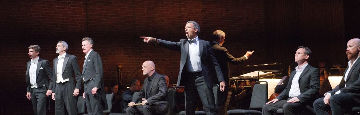 BANNER IMAGE ABOVE: RODERICK WILLIAMS (BILLY BUDD), BRINDLEY SHERRATT (JOHN CLAGGART), PETER SAVIDGE (MR REDBURN), DEAN ROBINSON (MR FLINT), CALLUM THORPE (LIEUTENANT RATCLIFFE), DANIEL NORMAN (RED WHISKERS) AND TIM OCHALA-GREENOUGH (ARTHUR JONES). PHOTOGRAPHER: BY SAM MURRAY-SUTTON © SNAPE MALTINGS.