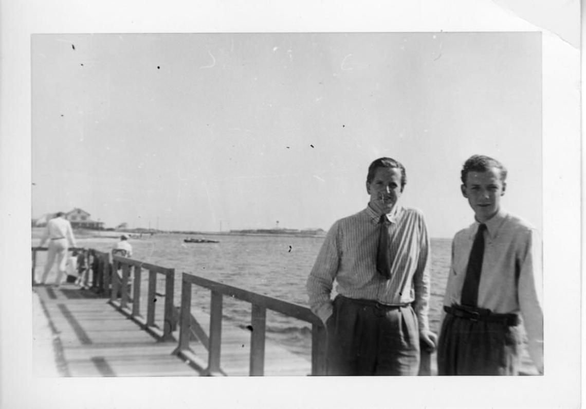 Britten and Pears on Jones Beach, Long Island, USA, c.1940. Photographer: unidentified.
