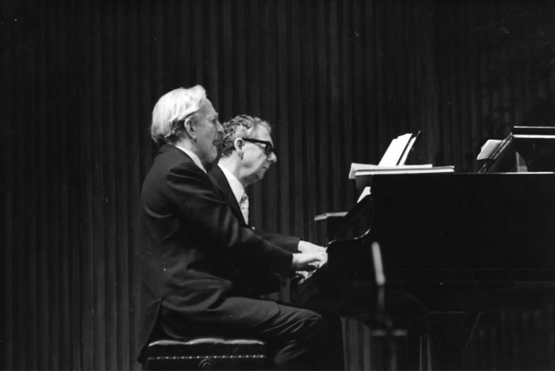 Britten and Pears performing together at Snape Maltings Concert Hall, 12 June 1972. Photographer: Jane Jacomb-Hood.