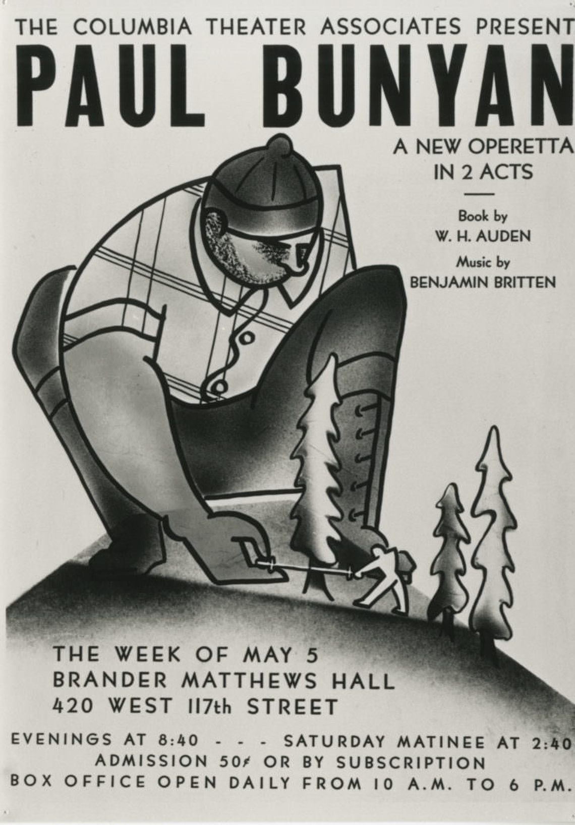 Poster for the first performances of ‘Paul Bunyan’. Courtesy of the Britten-Pears Foundation.