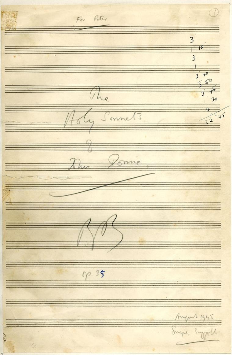 Title page of Britten’s August 1945 composition draft, The Holy Sonnets of John Donne, op. 35