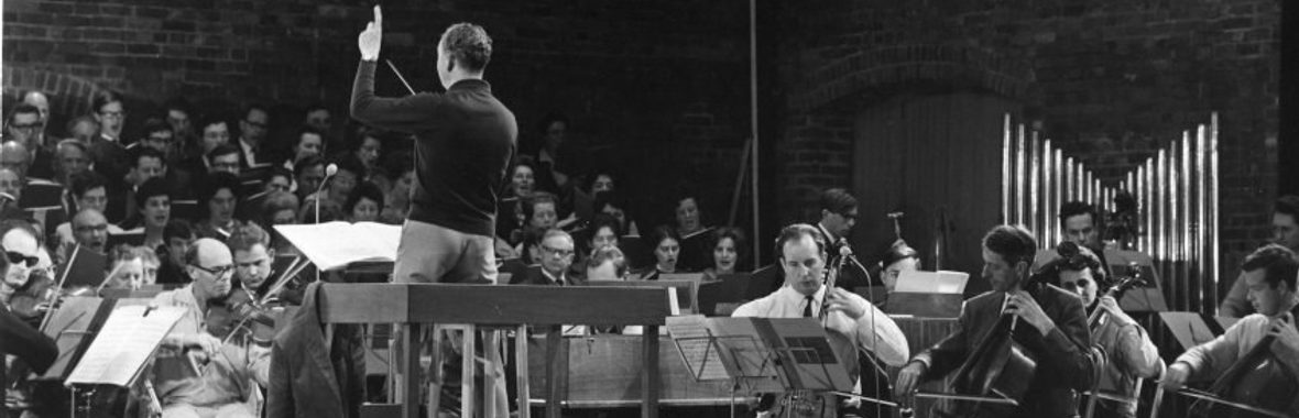The ECO established a strong association with the Aldeburgh Festival from the early 1960s onward. Britten performed as piano soloist and conductor both on the concert platform and in the studio, recording works such as Bach’s Brandenberg Concertos and St John Passion. In 1967 the ECO was the first orchestra to perform at the new Snape Maltings Concert Hall after it was officially opened by Queen Elizabeth II. And Britten conducted the ECO in June 1970 when, a year after a fire that destroyed the Maltings, the Aldeburgh Festival opened with a concert to mark the rebuilding of the House. During the latter part of his career, Britten composed with the ECO’s sound very much in mind. The orchestra was involved in first performances of the operas Owen Wingrave (1971) and Death in Venice (1973), and the cantata Phaedra (1976) written for Janet Baker. Anita Lasker-Wallfisch took her place in the cello section on all these occasions.
