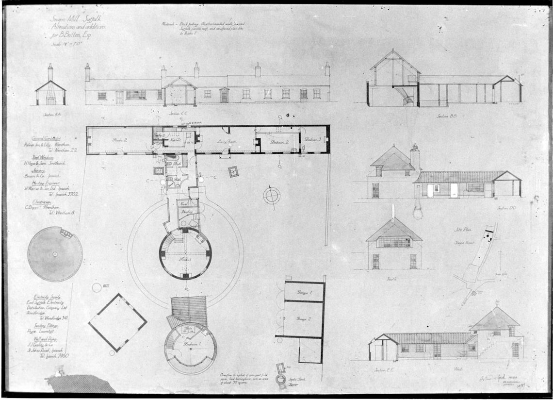 Architectural plan for the conversion of The Old Mill, Snape in 1937