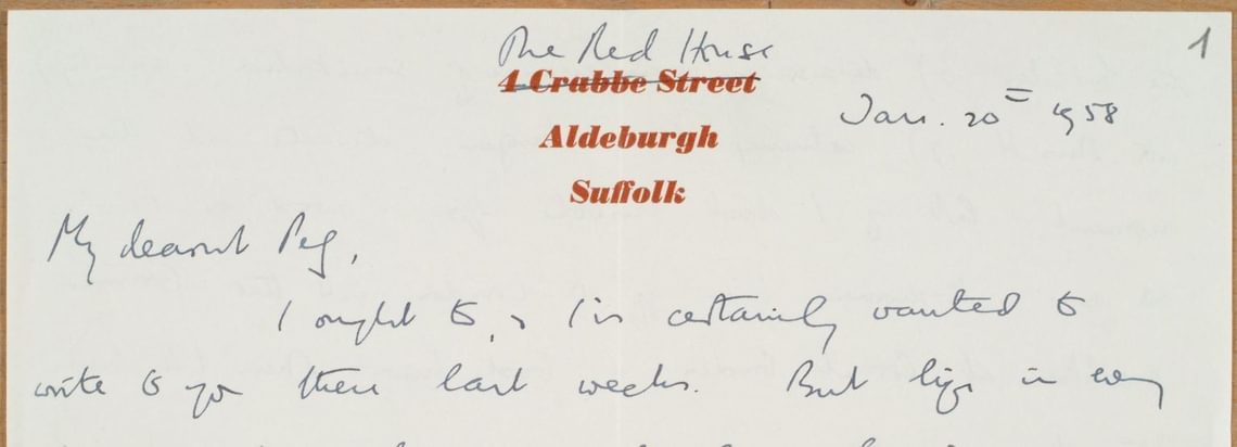 Letter from Britten to Princess Margaret (‘Peg’) of Hesse and the Rhine in early 1958, using leftover headed paper from the previous house.