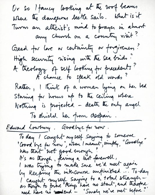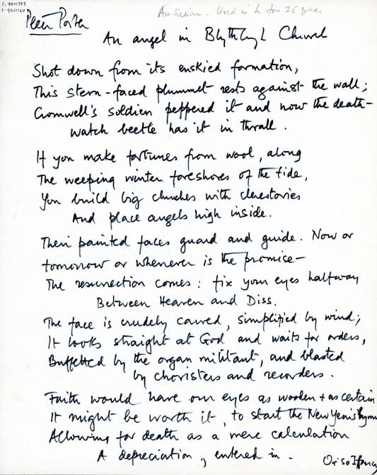 Peter Porter’s ‘An Angel in Blythburgh Church’ handwritten by Peter Pears