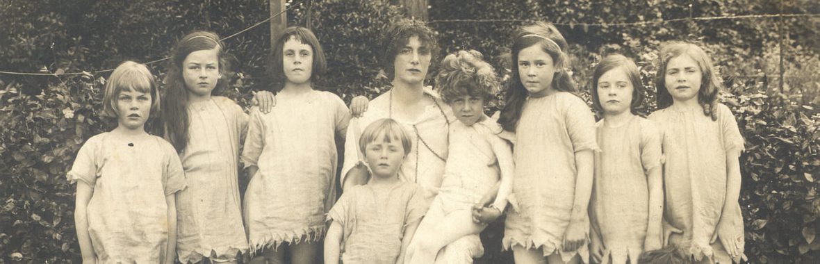 Britten on his mother Edith’s knee during a Sparrow’s Nest Theatre, Lowestoft production of Kingsley’s The Water Babies, in which he played Tom, June 1919.