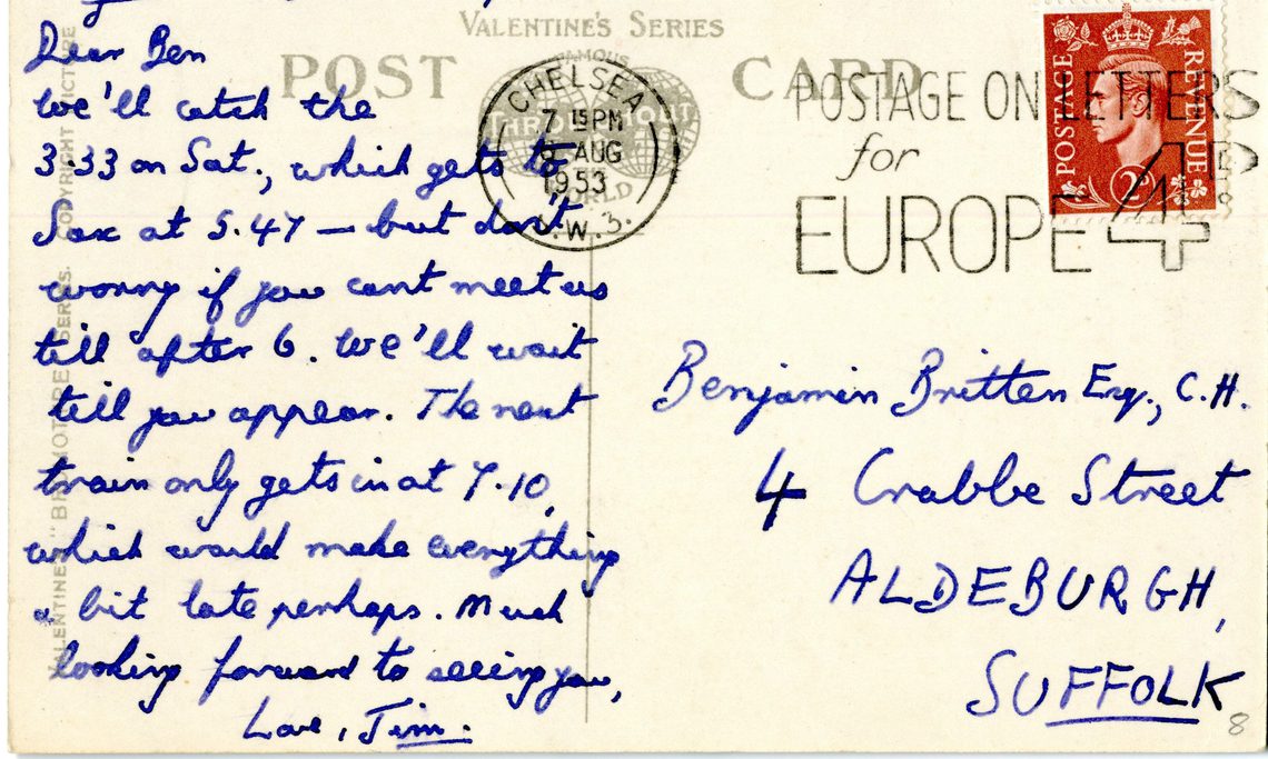 In 1951 Britten invited Bernard to work on preparing the full score of his opera Billy Budd for publication. Britten, however, worried that he might have felt the work to be mundane. In October of that year, he invited Bernard to attend forthcoming rehearsals at Covent Garden, adding in his letter that “I hope that the results of (working on Budd) aren’t all negative, & that you’ve learned a little about how to (& how not to) write an opera.”