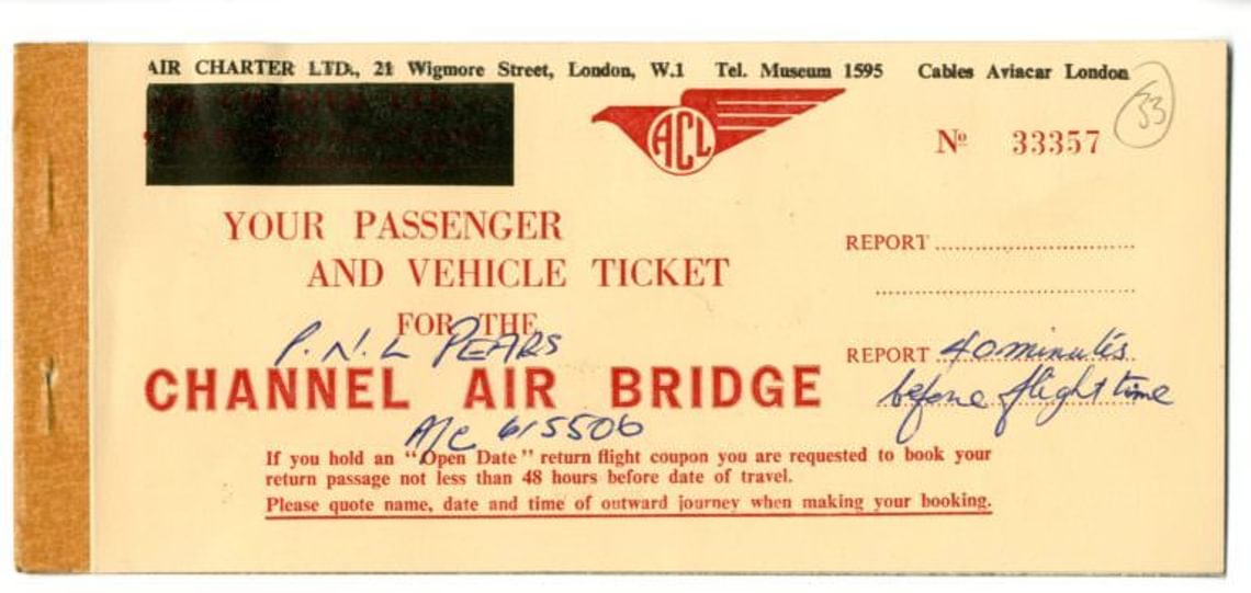 Peter Pears’ Channel Air Bridge ticket from 1959.