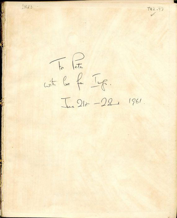 Inscription from Imogen Holst: ‘For Peter with love from Imogen. June 21st – 22nd 1961.’