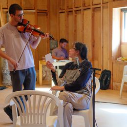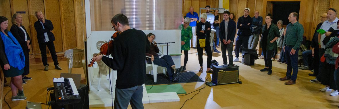 Joel’s set is inside/outside: TV set, front lawn, magnolia y mould, dredged up ornaments. Laurie lags on violin, synth, samples; Jessica watches and sings. The mind runs fast while the body sags, sludge in a cage, fat coagulating on bones.