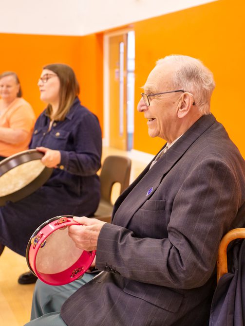 Connection is what these sessions are all about. We have all noticed the impact of the essential 'tea and cake' break in the middle of sessions, where participants are given time to chat. It's been really special to see friendships blossoming between participants throughout the weeks. Getting to know the Participate attendees has been great for us all; two participants even realised they were distantly related during a chat over a cuppa! The sessions have also provided some respite for carers and relatives coming along, giving them space to relax and enjoy making music and even providing ideas and songs to take home and try out. One regular participant, who attends as a caregiver with her friend, told me that they’ve been using some of the Participate activities at home during their morning routine to help with getting up and ready for the day.”