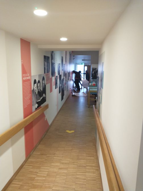 Whilst the gardeners dealt with the clean-up, inside there was a team of three hanging the vinyl panels for the 2022 exhibition. This is a precision task which takes patience and accuracy. Not dissimilar from hanging wallpaper although I suspect with rather less room for error. From what I have seen so far, the 2022 exhibition Britten and Women is going to be fascinating. Stay tuned for more information about it in subsequent articles.
