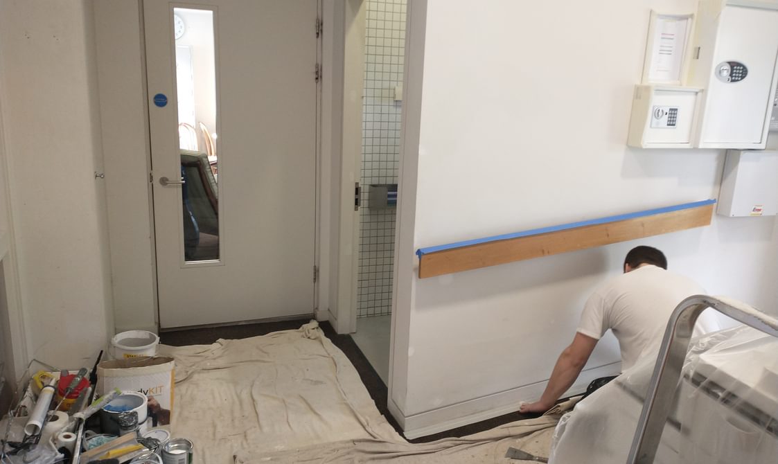 Meanwhile, the entrance hallway to the office area was being painted. It is a high traffic area used by musicians, gardeners, volunteers, staff, contractors, couriers, and, perhaps slightly more bizarrely, it is also where the printer lives. So, after nearly 10 years, it is rather overdue a repaint.