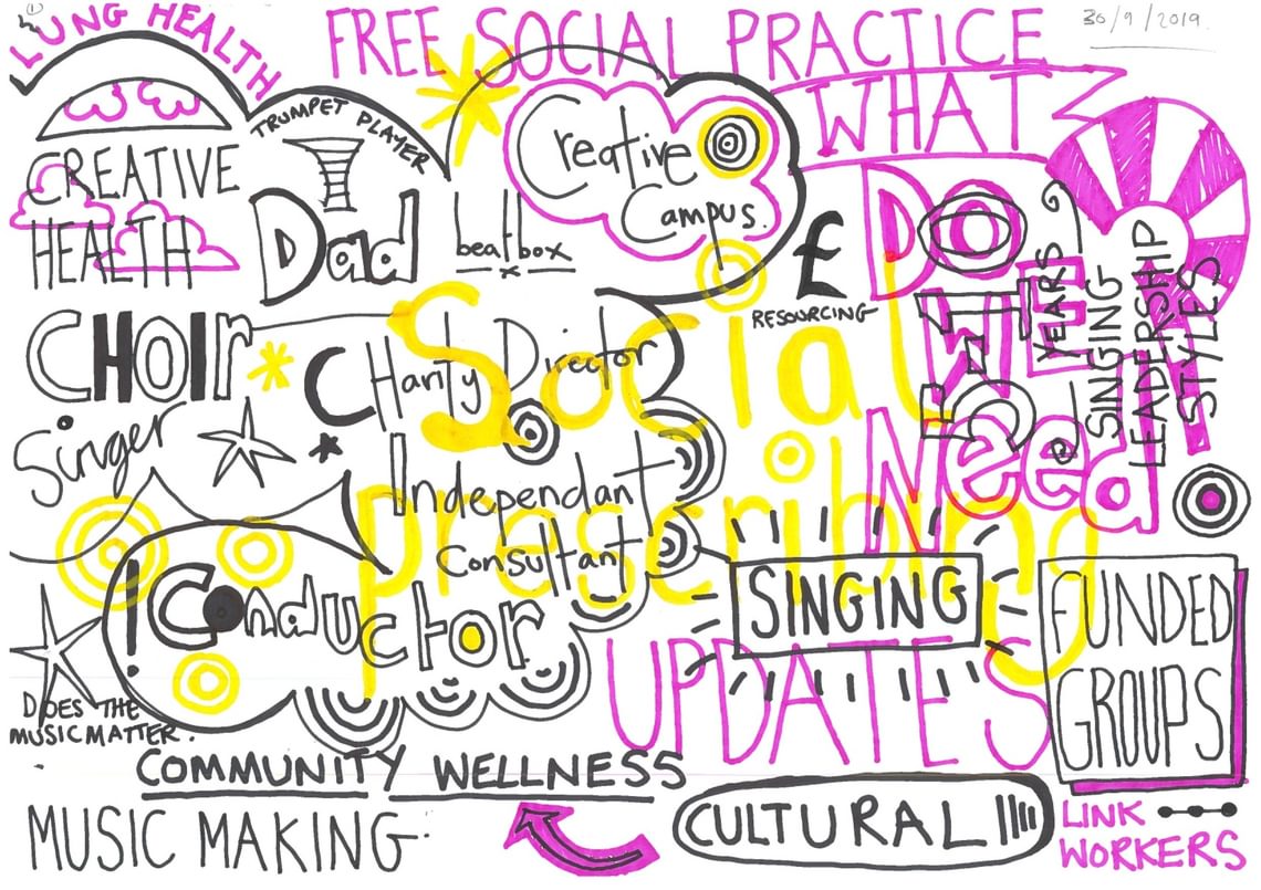 A growing body of research evidence is drawing attention to the many positive impacts singing can have on physical and mental wellbeing, encouraging increasingly more members of the community to seek the connectivity and uplifting qualities of group singing activities. With social prescription currently high on the government agenda, both demand for such provision and complexity of need are likely to increase dramatically. Facilitated by Katherine Zeserson, and with an opening presentation by Bev Taylor, NHS Lead for Social Prescribing, this event brought together researchers, policy-makers, clinicians, practitioners and other stakeholders to consider how community-based assets (choirs, singing and music groups) become ‘social prescribing’ ready.