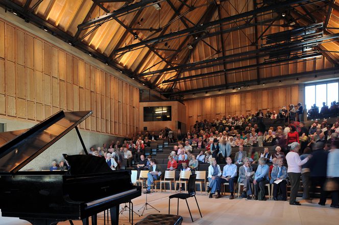 At the heart of the Hoffmann Building is the Britten Studio, designed to have an excellent and flexible acoustic with a high level of sound insulation which is ideal for recording orchestral rehearsals. It can also be used as a 340–seat venue.