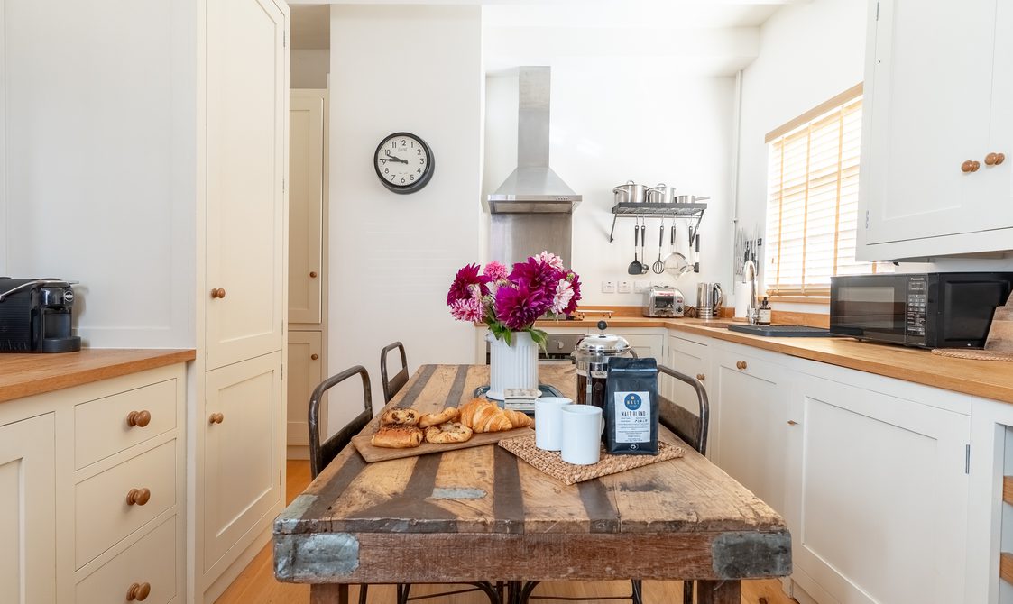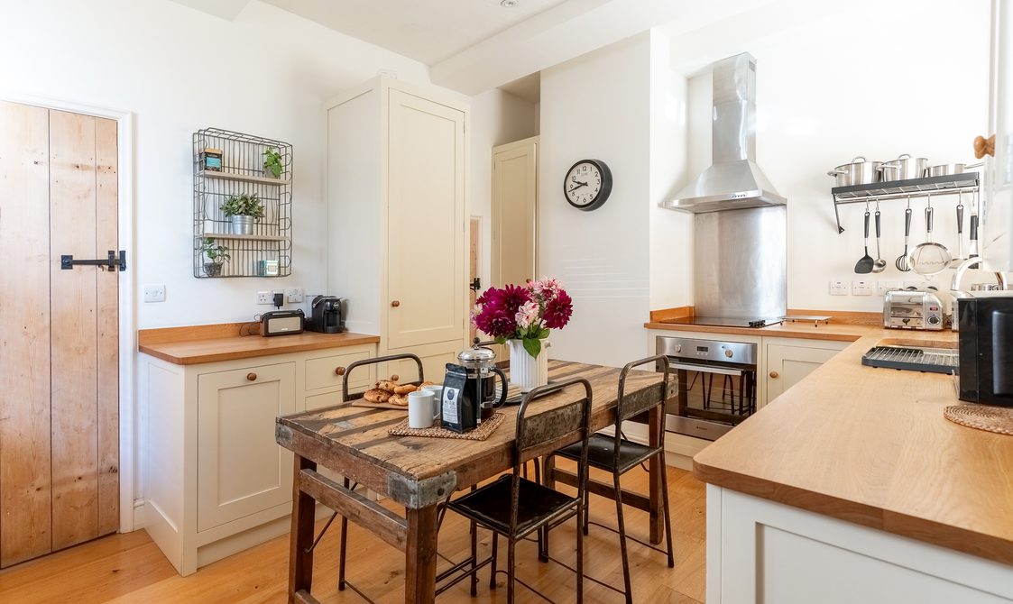 Malt Cottage is tucked into the side of a former railway archway, once used for goods trains into the Maltings, now lovingly converted into a unique and cosy property. The modern, well-appointed kitchen and dining area provide a welcoming space to cook, eat, and relax.