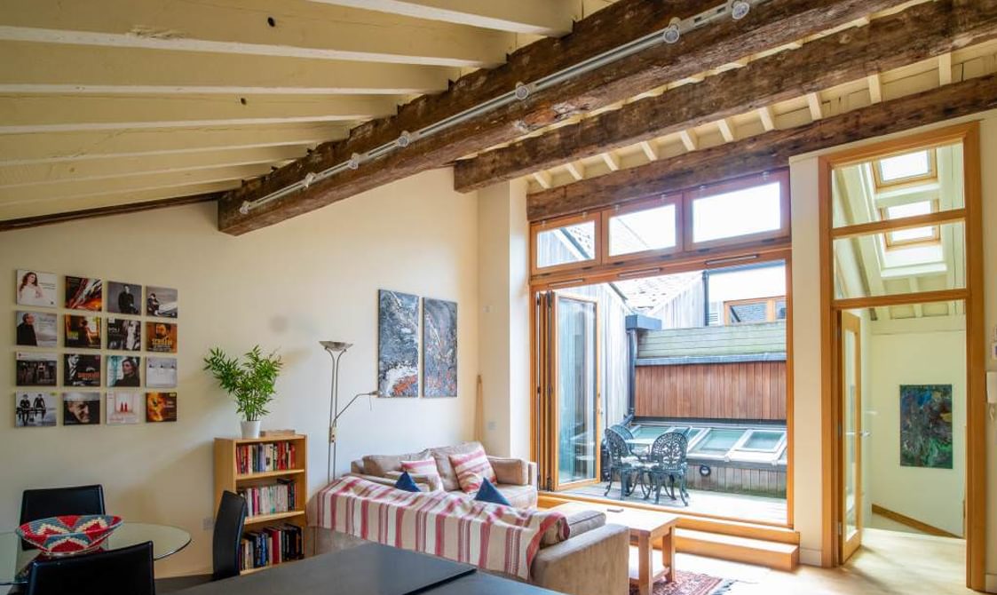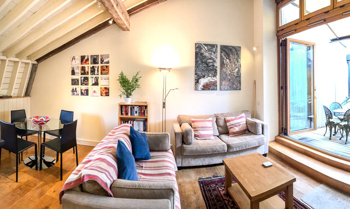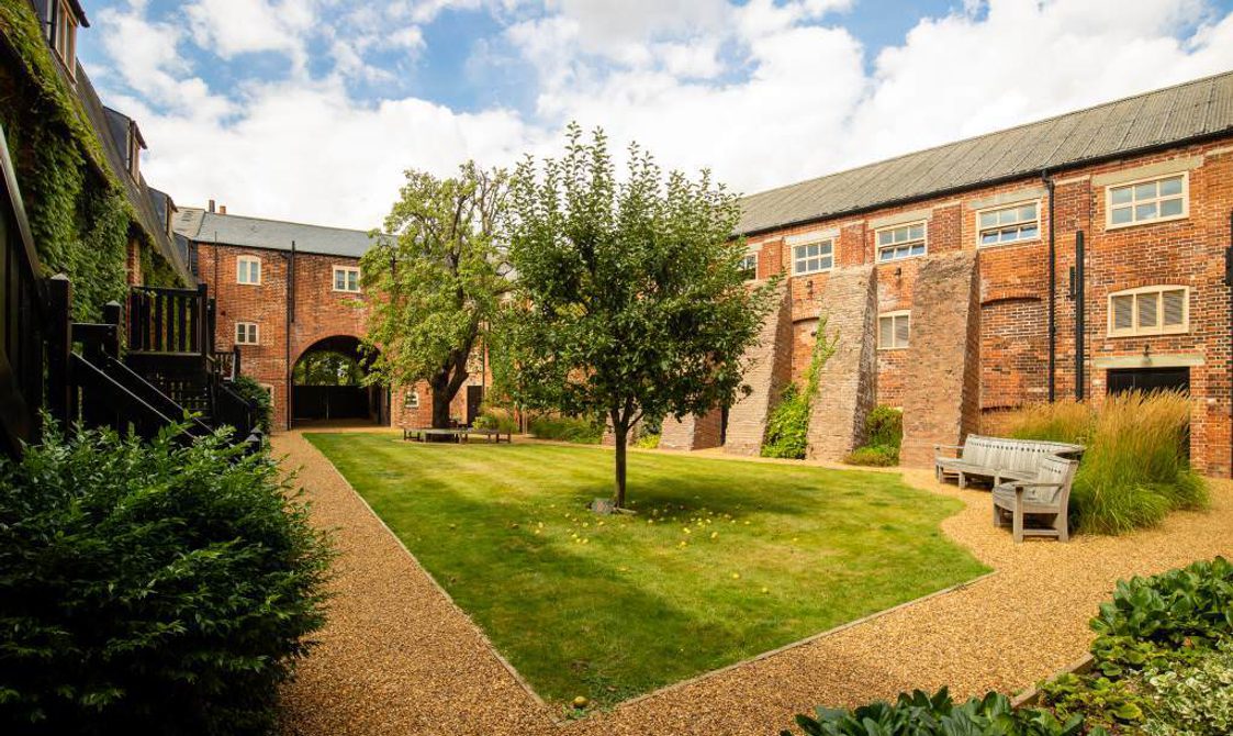 On entering the Courtyard via either the secure underground car park or by the main entrance there is a sense of being part of a secret place. This converted apartment is light and well-furnished and overlooks a peaceful internal courtyard – perfect for a short break or a longer stay when the beautiful surrounding areas can be explored at leisure. The apartment is based on the first and second floors of a malt house with many of the original features enhancing the high standard of decoration throughout the property. The roof terrace with seating allows for the perfect setting for relaxing.