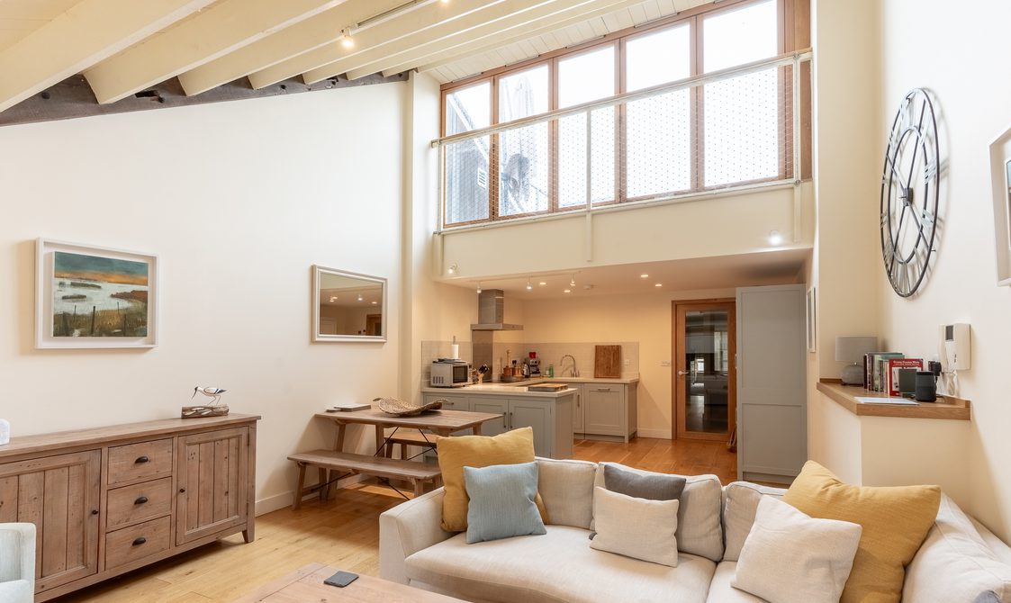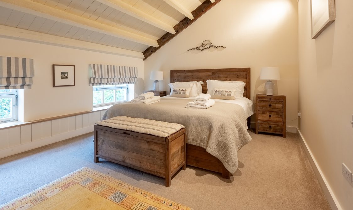 A bright hallway leads to two bedrooms. A stylish twin room sits next to the spacious family bathroom, while the serene main bedroom features a super king bed and river views, making this a truly standout stay. Ample storage and thoughtful touches throughout ensure the property feels like a home from home.