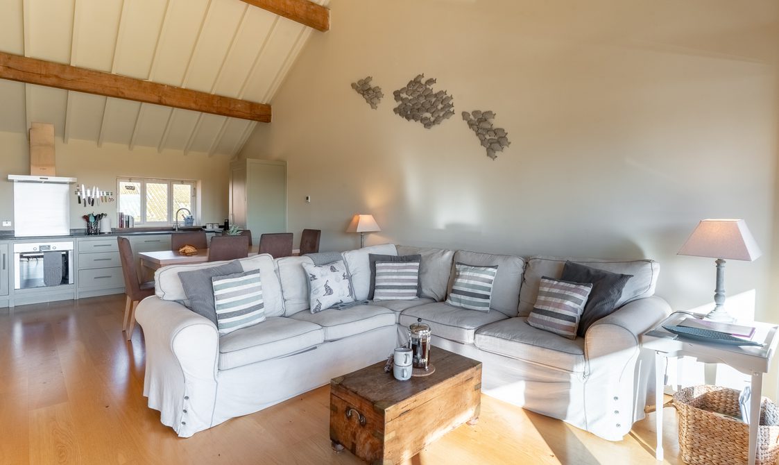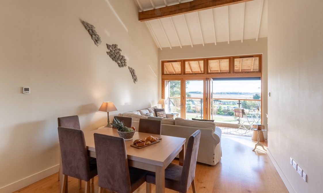 No. 7 Iken View is a spacious and well-appointed property with stunning views towards Iken across the River Alde. On the ground floor, there are two bedrooms: one with a king size bed and a twin room. Oak stairs lead to another twin room, a WC, and the main ensuite bedroom featuring a walk-in shower.